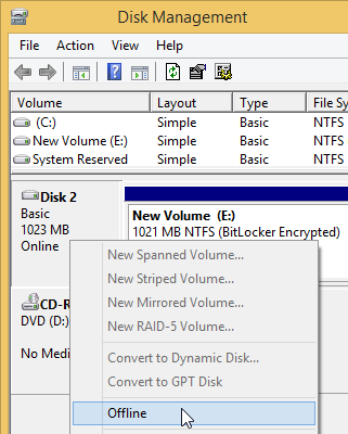 To dismount a non-removable drive encrypted by BitLocker, use Offline